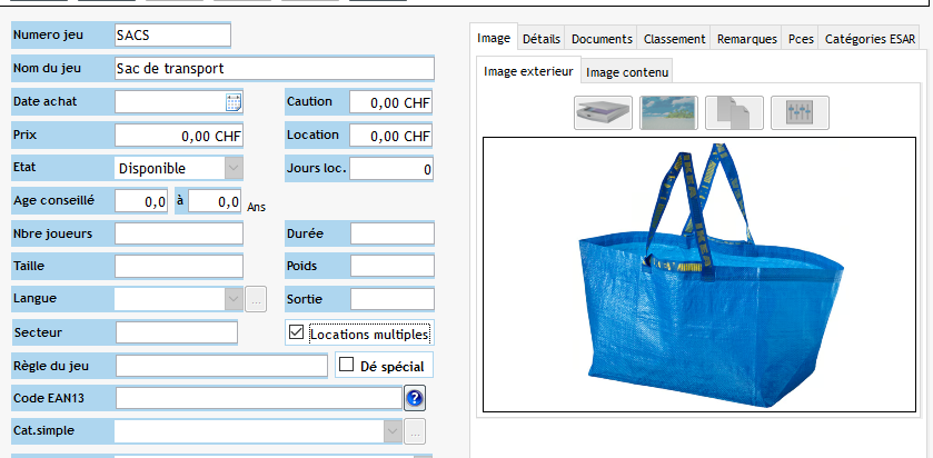 Permet de définir si ce jeu / objet peut être loué plusieurs fois. Cet attribut permet de louer des jeux / objets qui sont considérés comme des accessoires, par exemple des sacs de transport, des accessoires de costume. De cette manière il est possible d’avoir un numéro unique pour plusieurs objets.