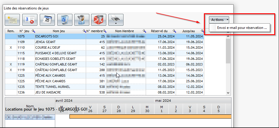 Les garanties ajoutées lors des locations de jeux sont visibles sur la fiche du membre, rubrique « Garantie ». Ce montant correspond à la somme de toutes les garanties en cours pour ce membre.
